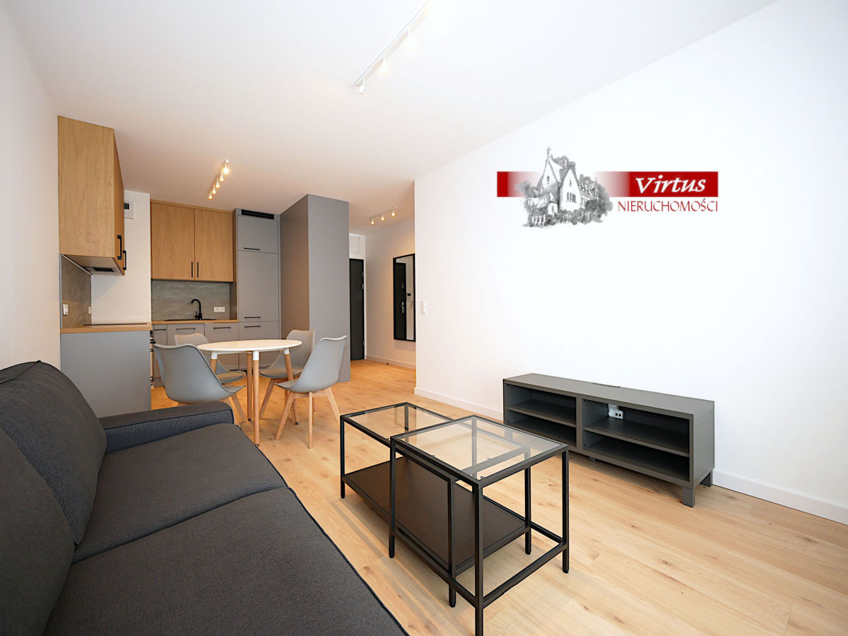 Mieszkanie składa się z dużego przestronnego pokoju dziennego w aneksie kuchennym o powierzchni 18 m2. Kuchnia jest zupełnie wyposażona ( lodówka, płyta indukcyjna, piekarnik elektryczny, zmywarka, wyciąg). Z pokoju wyjście na ponad siedmiometrowy balkon. Sypialnia o powierzchni 10 m2 wyposażona jest w dużą szafę. Na wyposażeniu nowe łóżko sypialniane . W łazience (3 m2) kabina prysznicowa , umywalka, muszla wc, szafki i pralka. W cenie czynszu najmu parking jednostanowiskowy oraz skrytka o powierzchni prawie 2m2