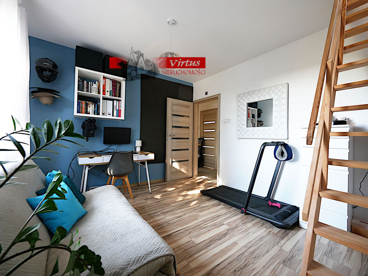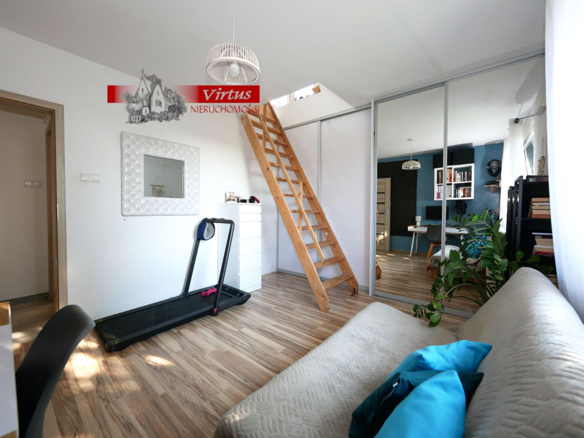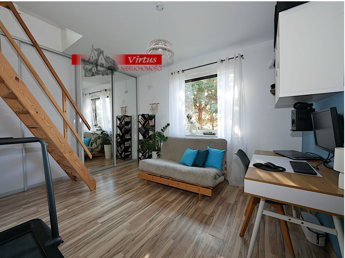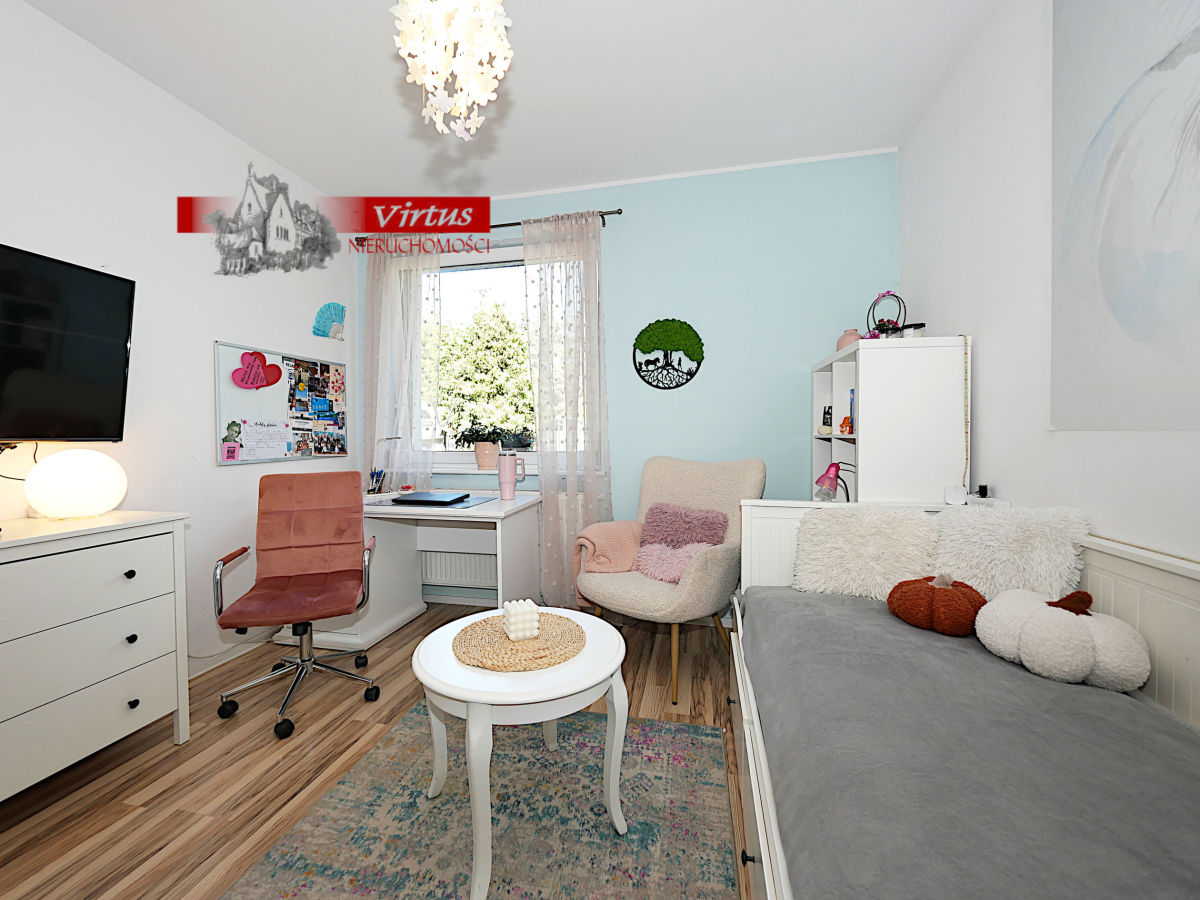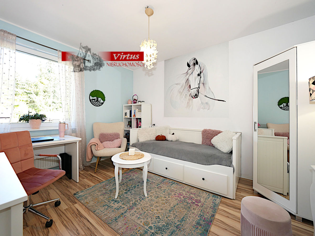 - część poddasza zaadaptowana na sypialnię (18 m2).
