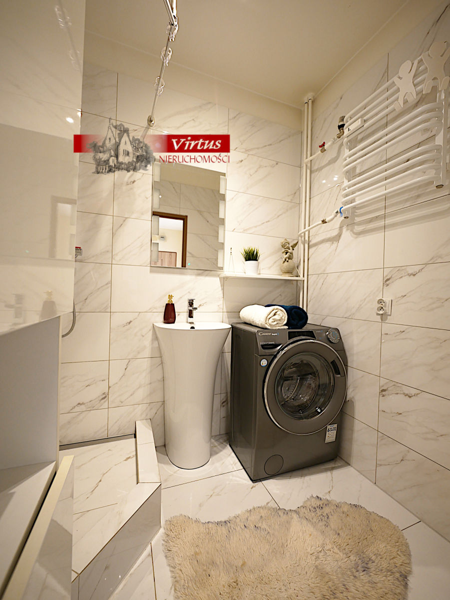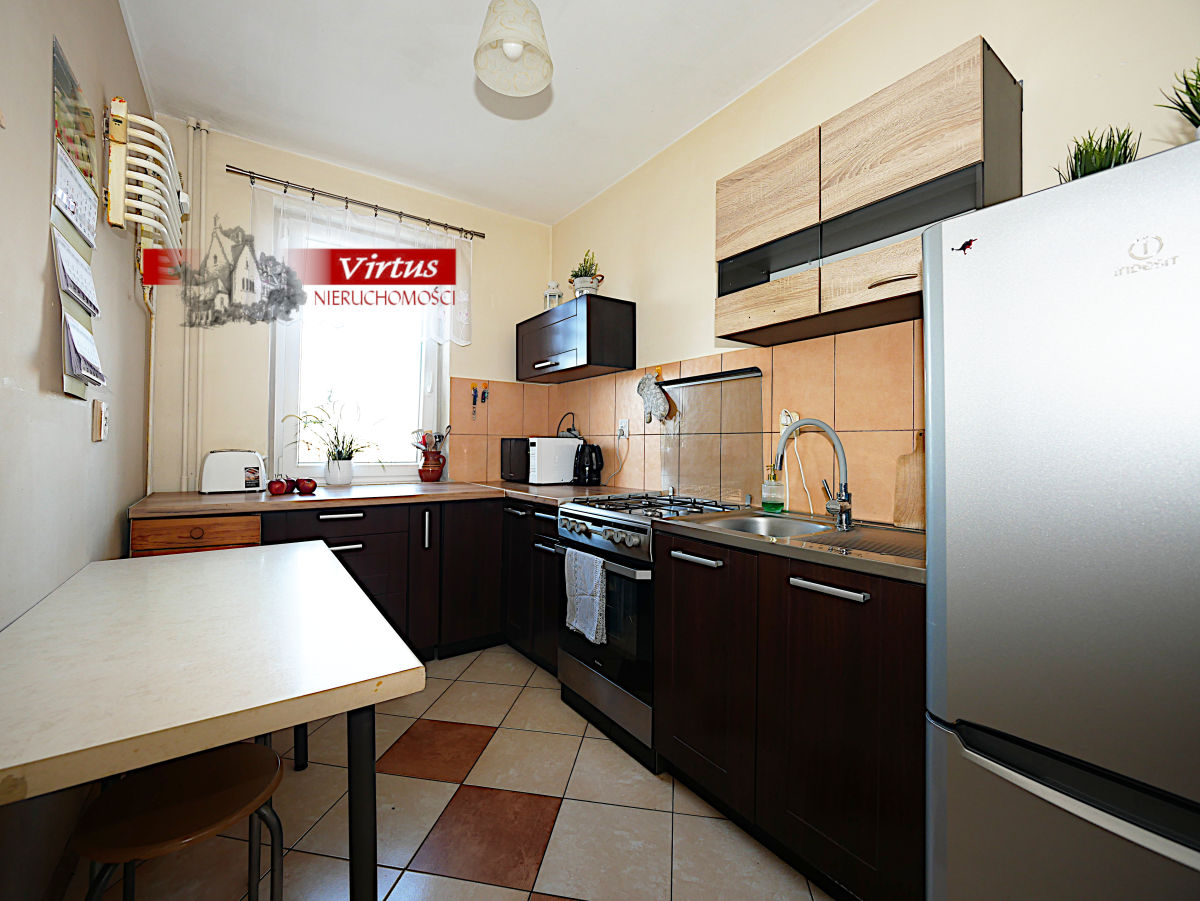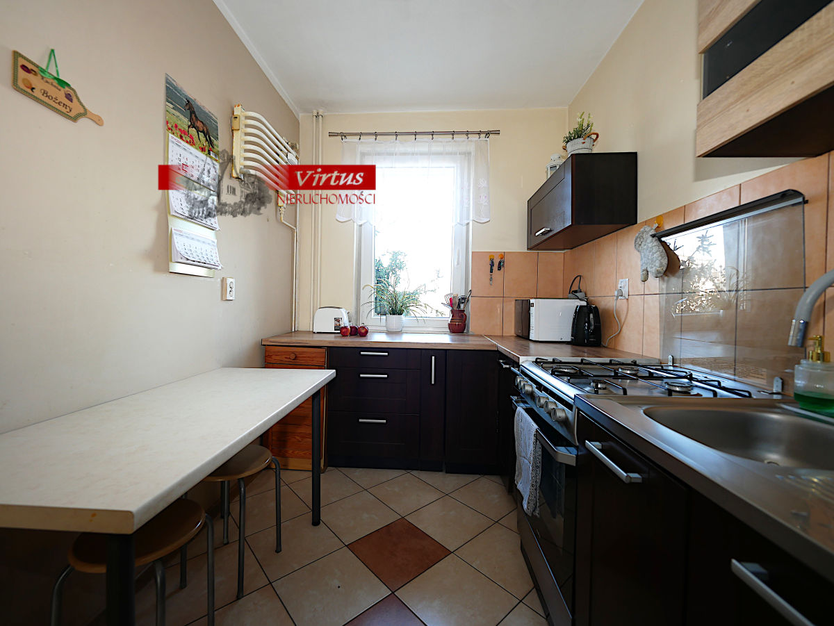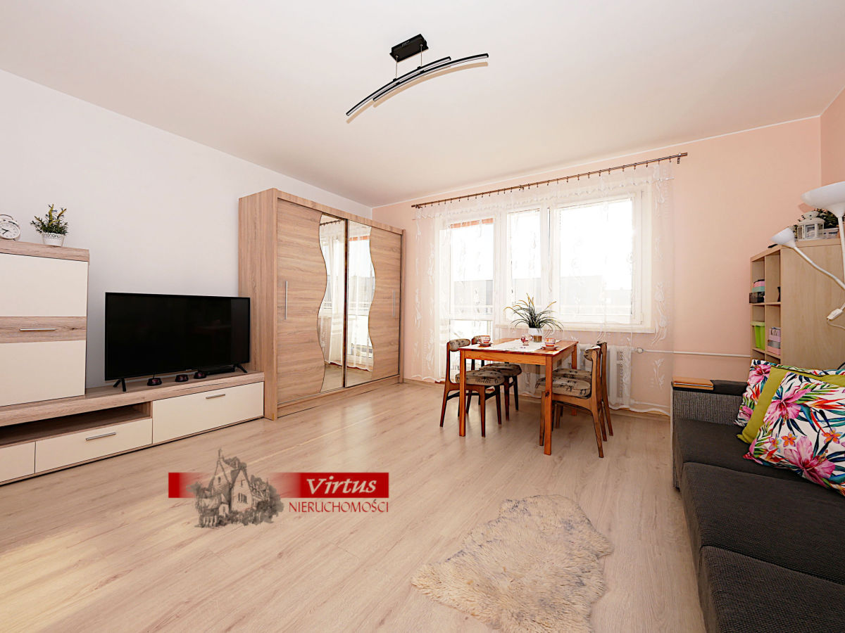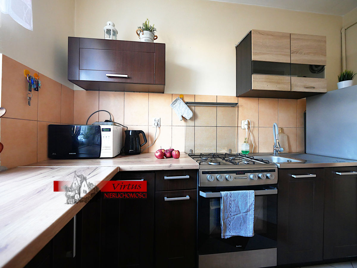 W cenie mieszkania pozostają meble kuchenne, w pokoju dziennym szafa typu komandor. Ściany pomalowane na biało, gładkie. Na podłogach w pokojach panele, w łazience, korytarzu oraz kuchni płytki gresowe. Mieszkanie przytulne, czyste, zadbane przyjemnie urządzone.