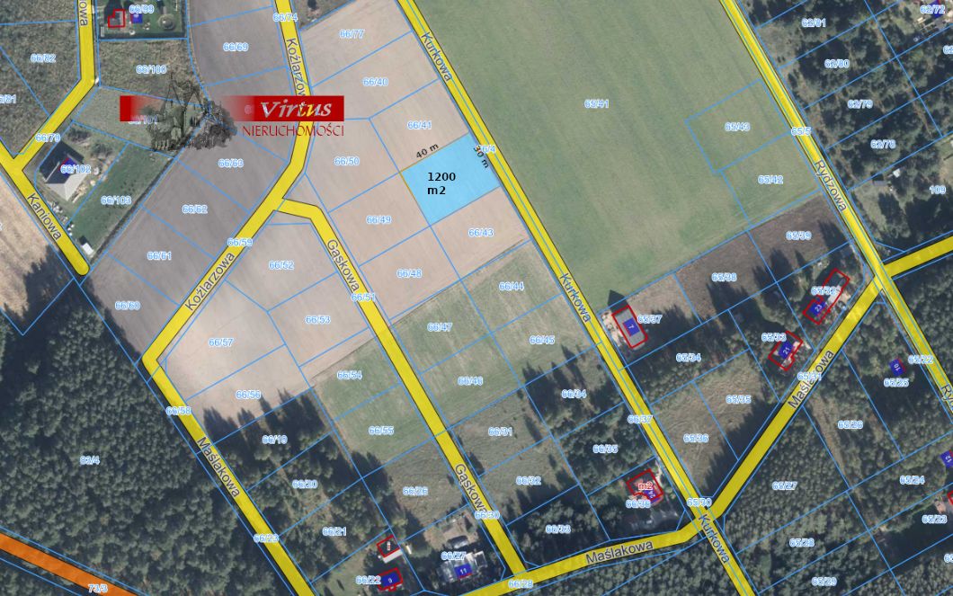 Działka jest prostokątem o wymiarach frontu 30 m oraz długości 40 m.